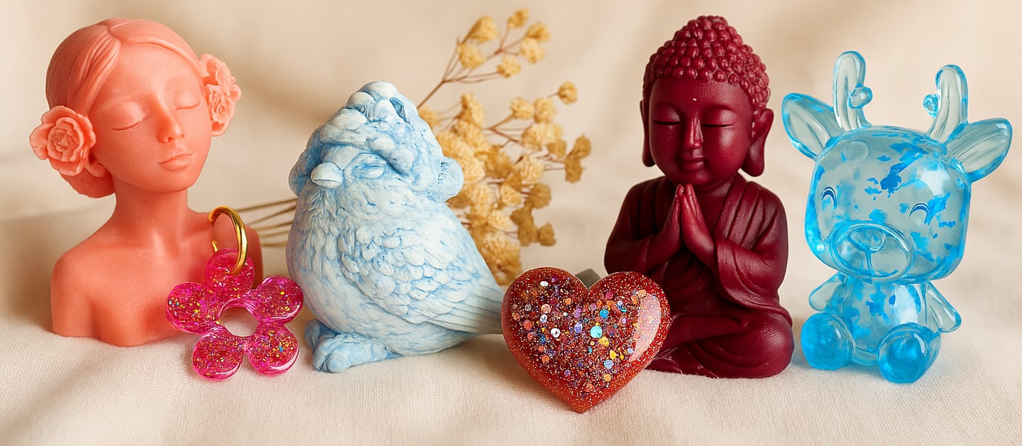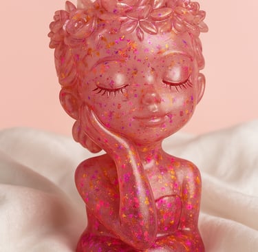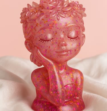 Objets lumineux, élégants et uniques, chaque pièce en résine est coulée à la main avec soin. Transparente ou colorée, la résine permet d’y intégrer paillettes, fleurs séchées ou pigments pour révéler toute ta créativité.